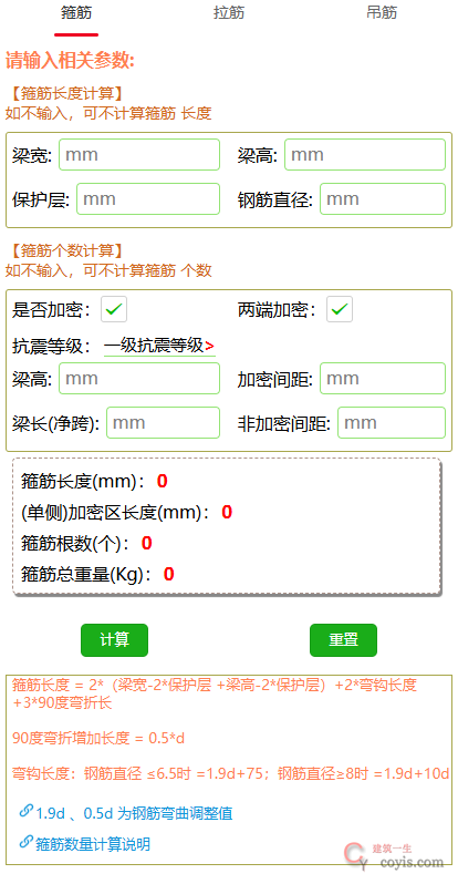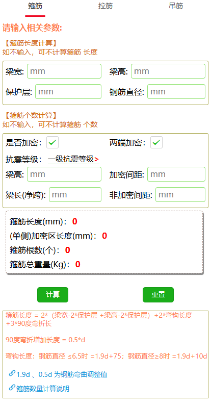 箍筋根数 ={ 向上取整[(加密区长度-50) / 加密区间距]+1 } * 2+{向上取整(非加密区长度/非加密区间距) -1 }