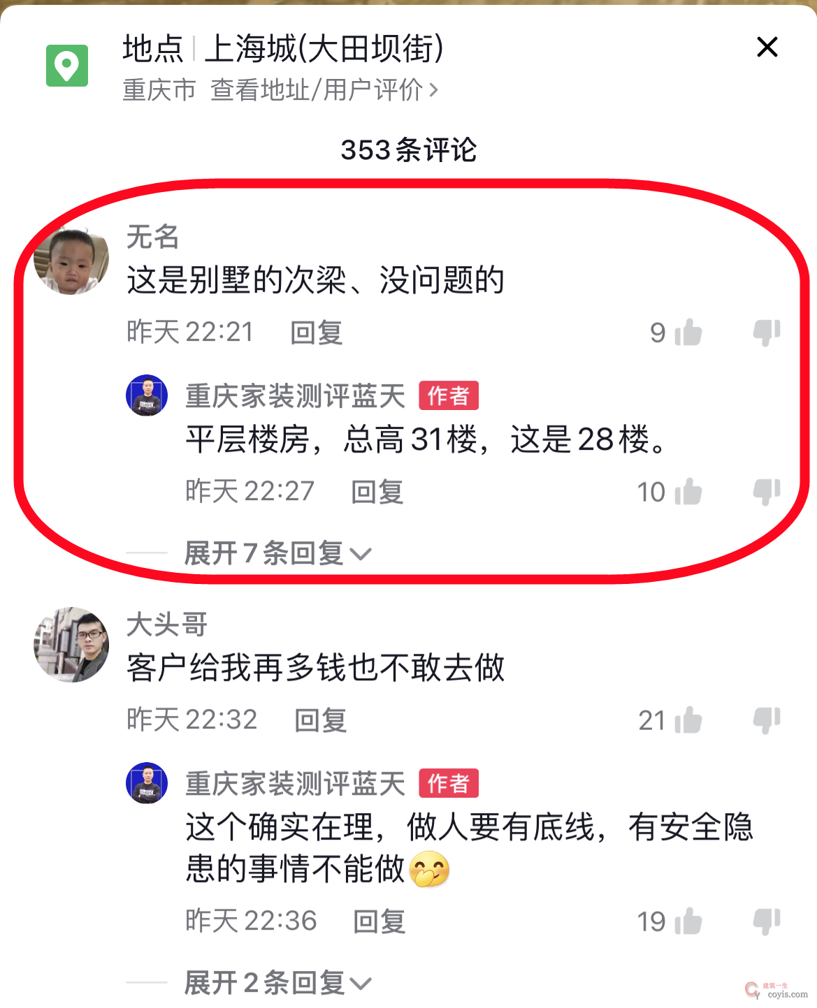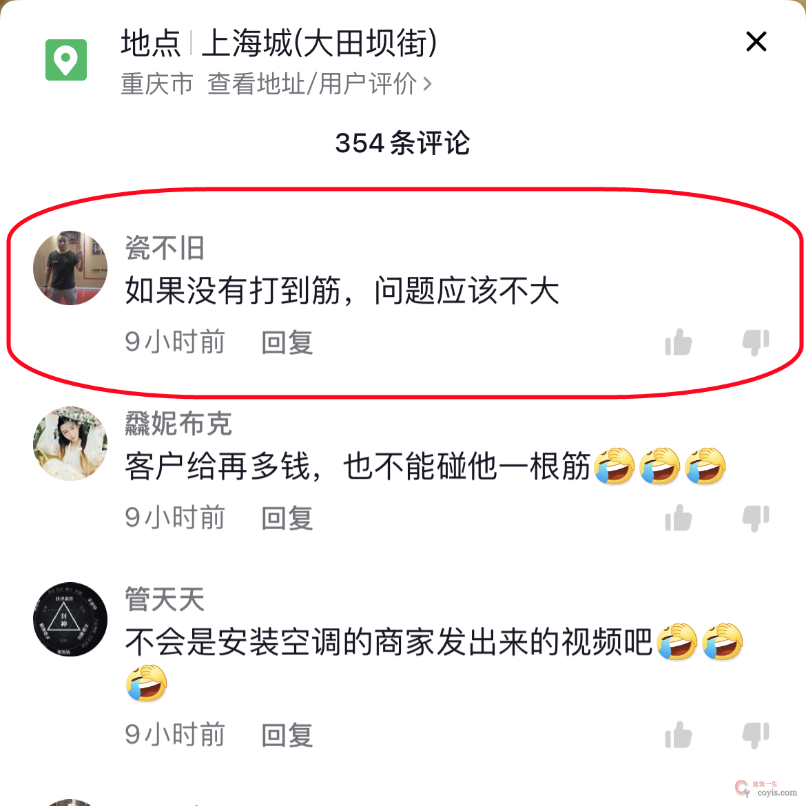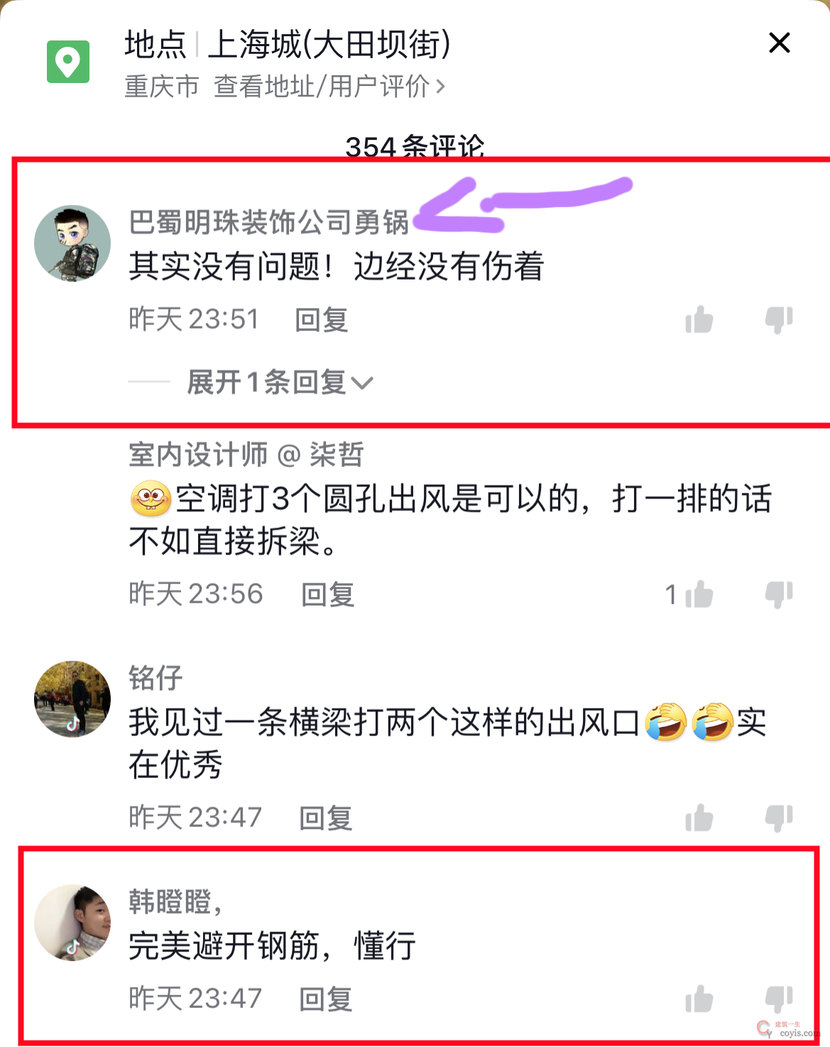 “其实没有问题!边经(筋)没有伤着”,来了,来了,这里来了个专业人士,巴蜀XX装饰公司,牛皮,专业人士都说没事了,那那些家装介的散兵游勇不是更有底气了。