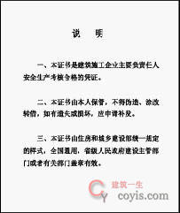 注:证书尺寸为12.5×17.6cm。本附件所列样式为“建筑施工企业主要负责人证书”样式,“建筑施工企业项目负责人证书”、“建筑施工企业机械类专职安全生产管理人员证书”、“建筑施工企业土建类专职安全生产管理人员证书”、“建筑施工企业综合类专职安全生产管理人员证书”样式与“建筑施工企业主要负责人证书”样式基本一致,封面和内页第1页、第11页中有关内容改为对应类别。