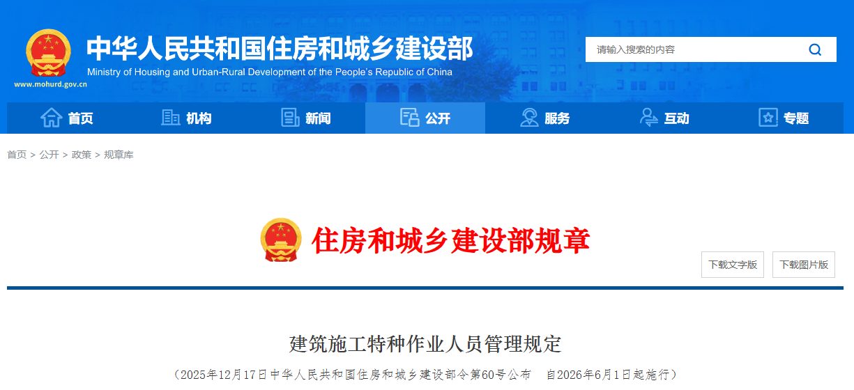 第四十五条 本规定自2026年6月1日起施行。《住房和城乡建设部关于印发〈建筑施工特种作业人员管理规定〉的通知》(建质〔2008〕75号)同时废止。