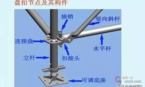1、承插型盘扣式钢管支架:立杆采用贪官承插链接,水平杆和斜杆采用管段扣接头卡入连接盘,用楔形插销连接,形成结构几何不变体系的钢管支架。承插型盘扣式干骨干支架由立杆、水平杆、斜杆、可调底座及可调托座等构配件构成。根据其用途可分为模板支架和脚手架两类。