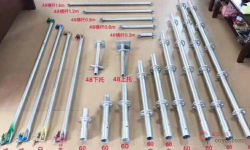 2、模板支架应根据施工方案计算得出的立杆排架尺寸选用定长的水平杆,并应根据支撑高度组合套插的立杆段、可调托座和可调底座。