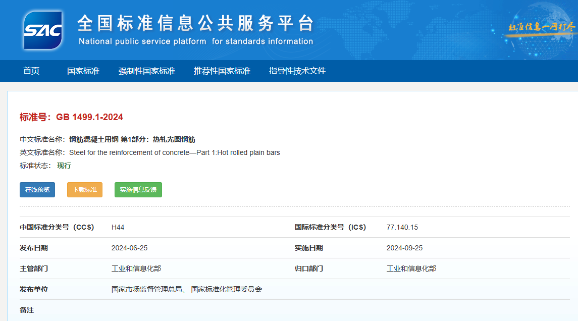- 规范名称:《GB 1499.1-2024 钢筋混凝土用钢 第1部分:热轧光圆钢筋》