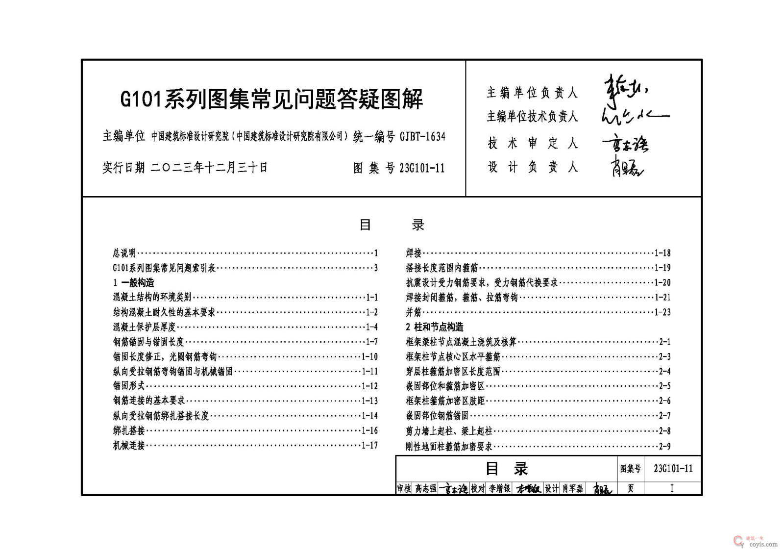- 图集名称:《23G101-11:G101系列图集常见问题答疑图解》
