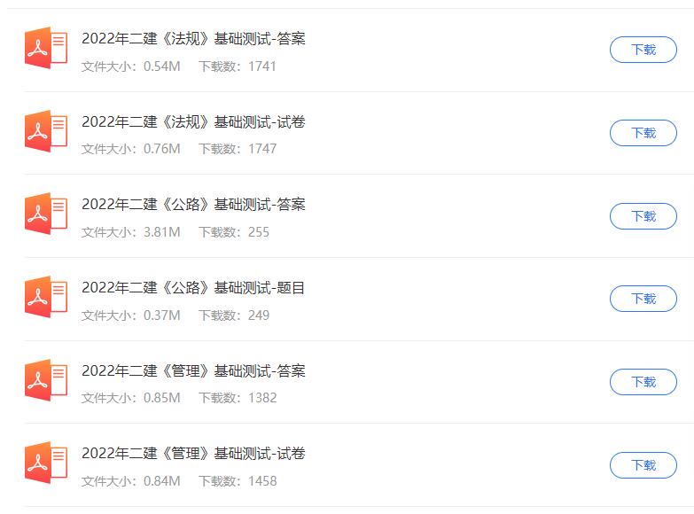 2022年二级建造师《各科》基础测试卷,科目列表: