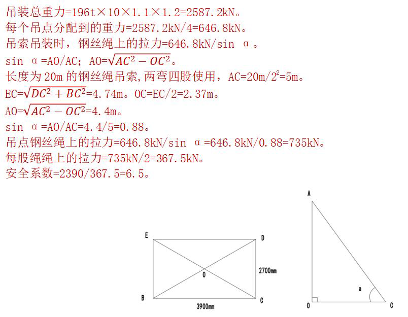 3.2、计算定子吊装时的吊索所受拉力和吊索安全系数。(计算时,
