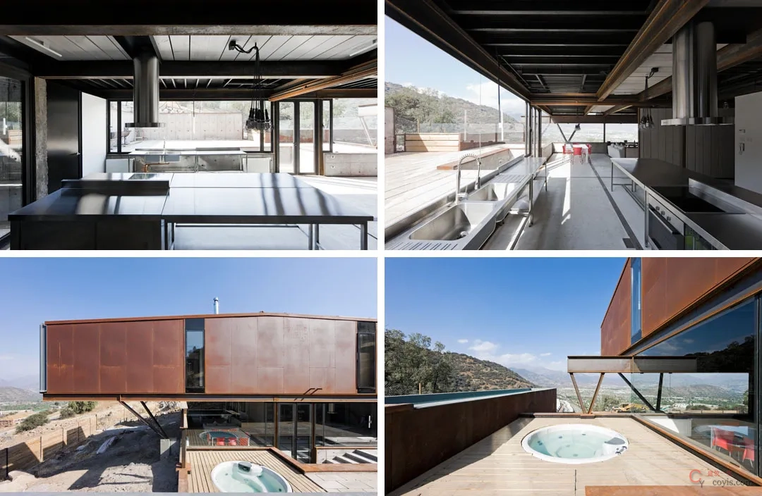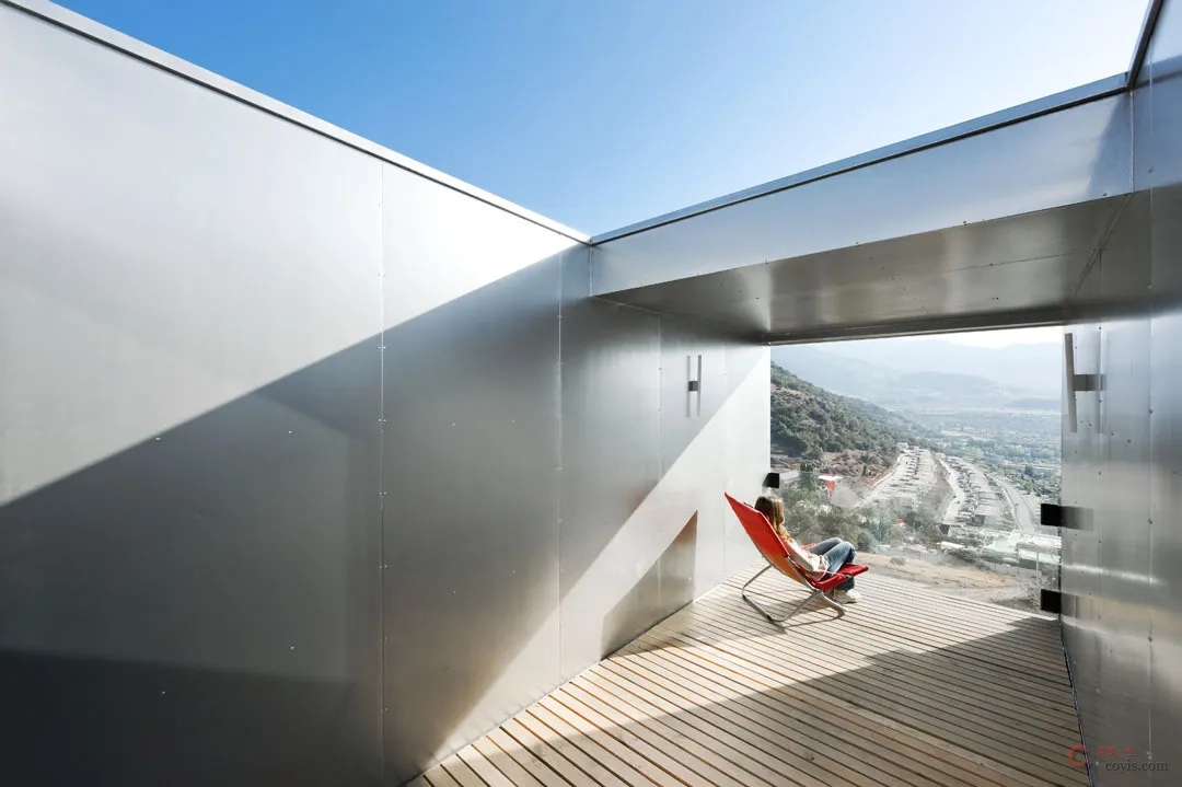 在安第斯山脉,有一所集装箱预制住宅安扎于山体斜坡之上,与山脉共存。建筑师运用对流原理,让建筑浸润在凉爽的半山中,使住宅内外都保持空气流通。