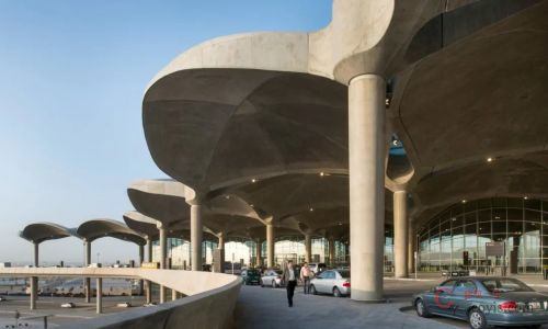 机场高效率被动性的设计灵感源自于当地传统。灵活的单元化建设方案让未来扩展存有可能。新建筑保证所在城市在黎凡特地区的中心枢纽地位。同时,考虑到安曼气候夏季昼夜温差大的特点,机场建筑基本上由混凝土灌注而成,耐热建材可被动地调控环境。机场顶由薄混凝土圆顶彼此镶嵌组合,为机场正面留下一片阴凉。
