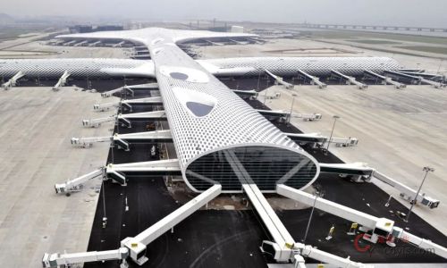 深圳宝安国际机场3号航站楼的设计理念让人想起蝠鲼的形状。蝠鲼是一条可随呼吸改变身形和变化自身,化身成为一只为飞行航程情感和幻想庆祝的鸟儿。3号航站楼的建筑结构——一条大约1.5公里长的隧道——好像是仿风而造,让人感觉这是一栋有生机的建筑。屋顶轮廓随着高度不同而变化,喻意着自然景观。