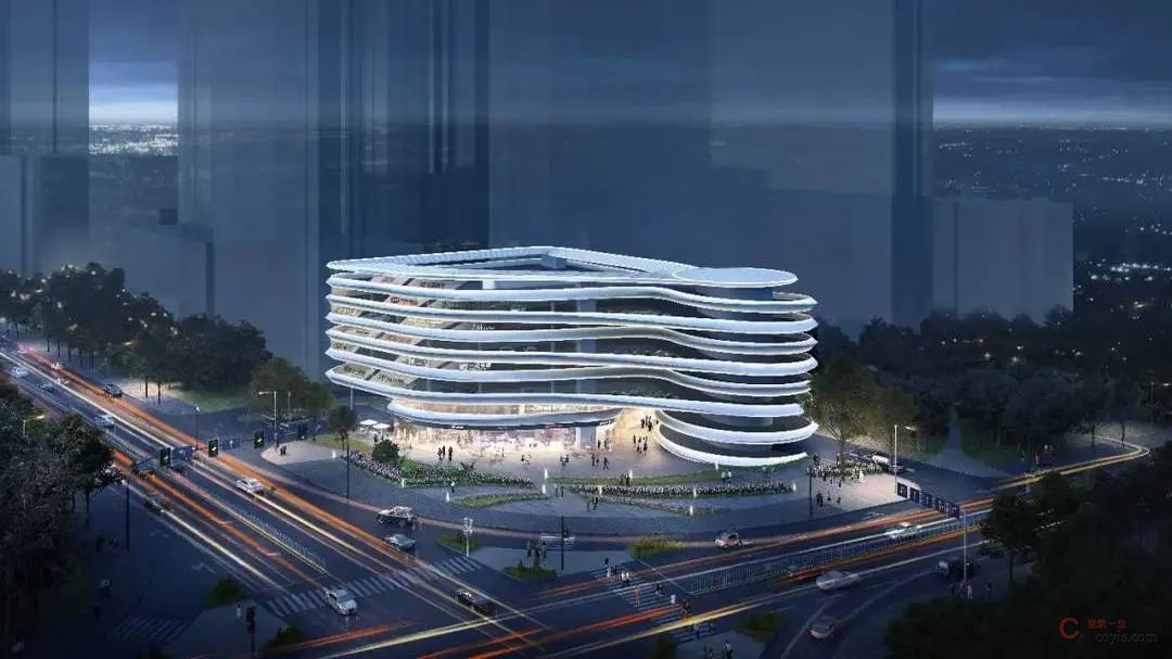 建筑造型摒弃了冗余的建筑语汇,以漂浮的建筑形体、开放而有韵律的建筑表皮,结合流线形的灯光布置与生态绿植的引入,体现工业美感,具备形象辨识度。