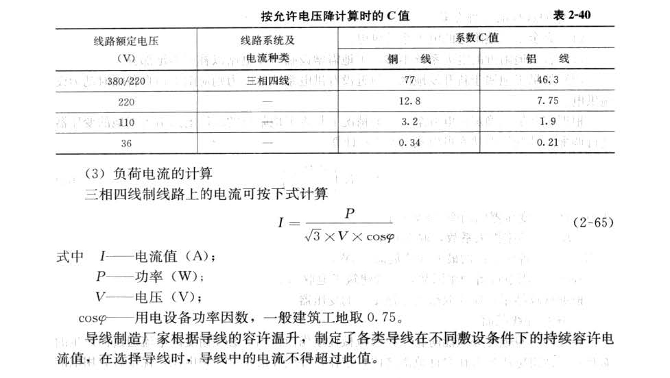 允许电压降参考值