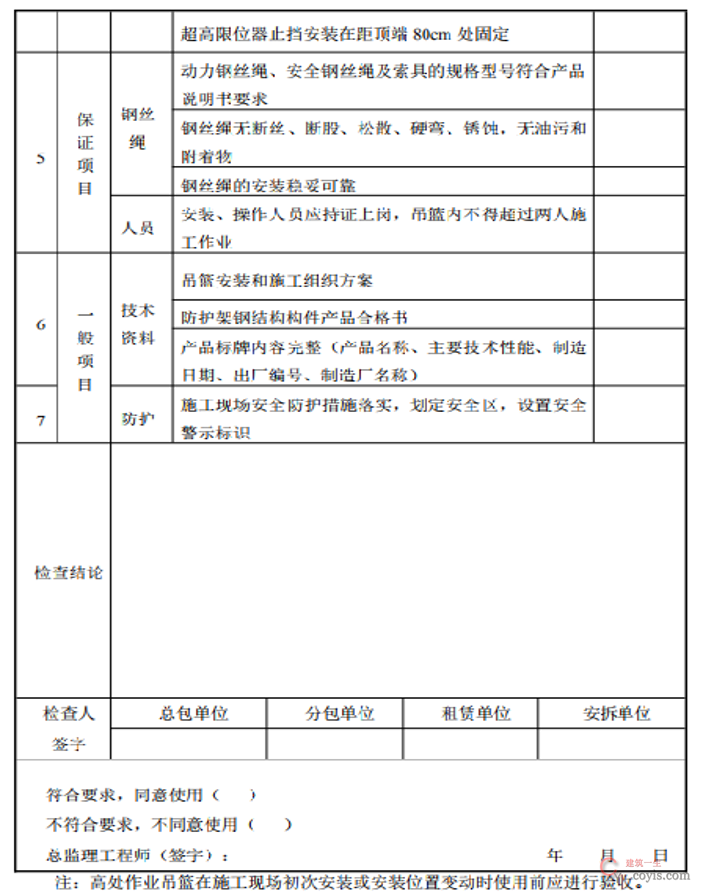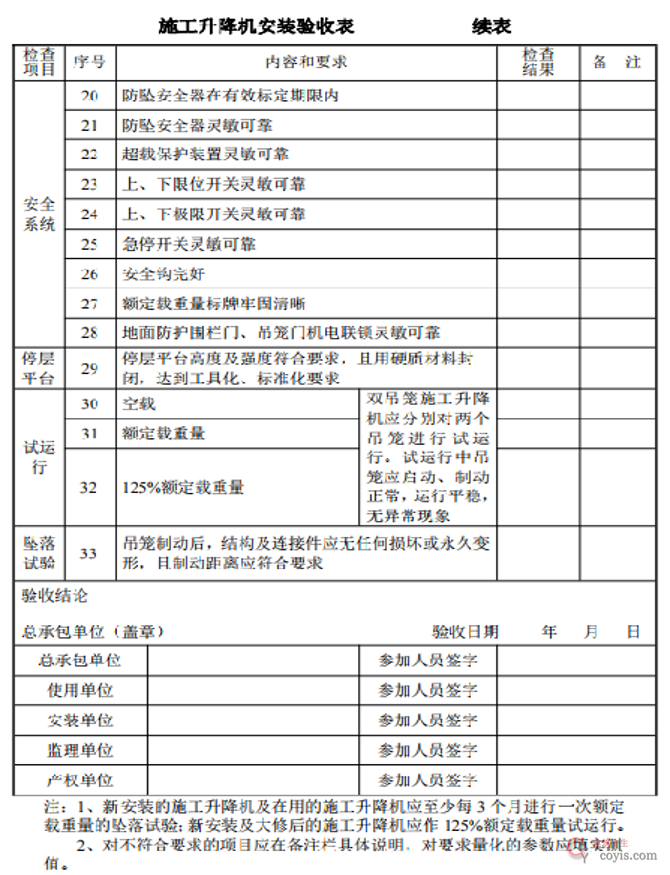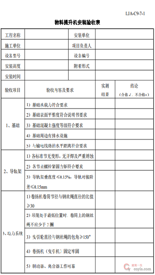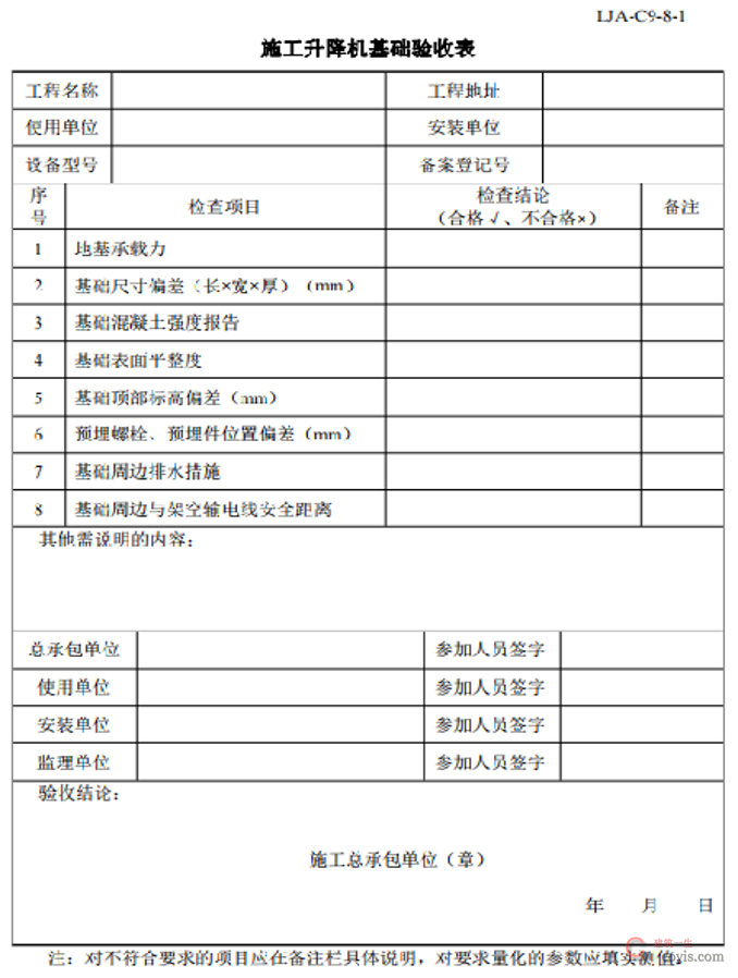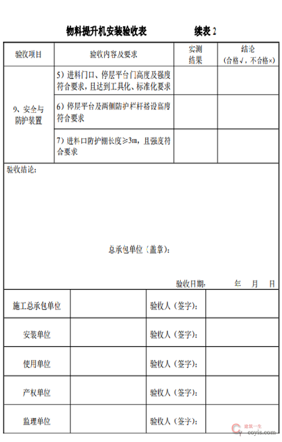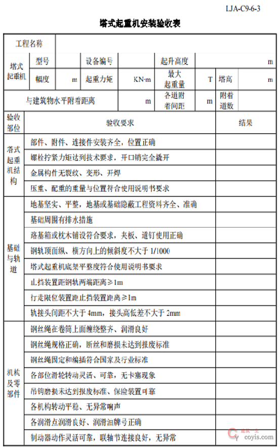 单位、安拆单位、监理单位按表LJA-C9-3-7进行共同验收,合格后方可使用。