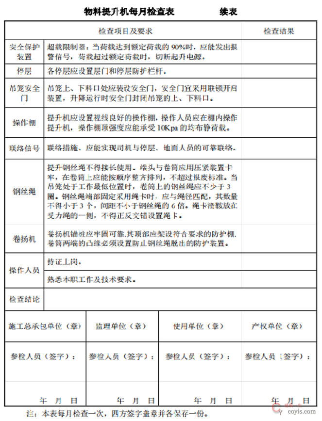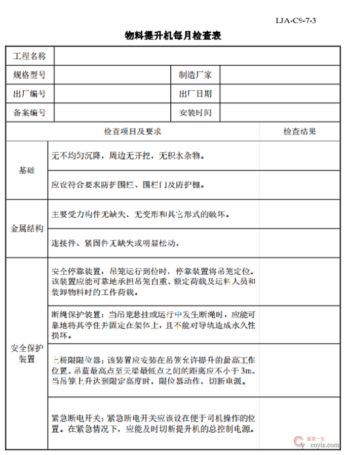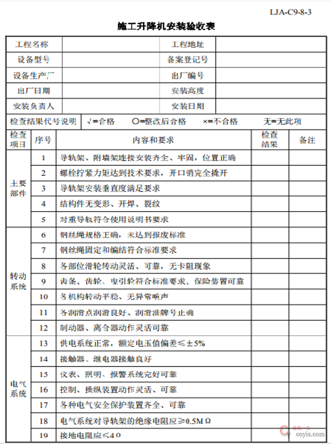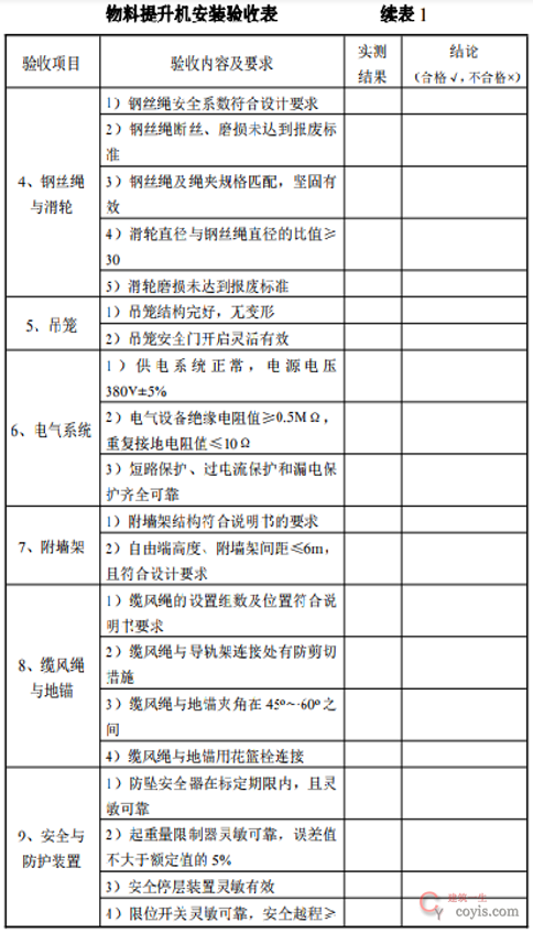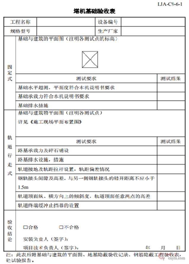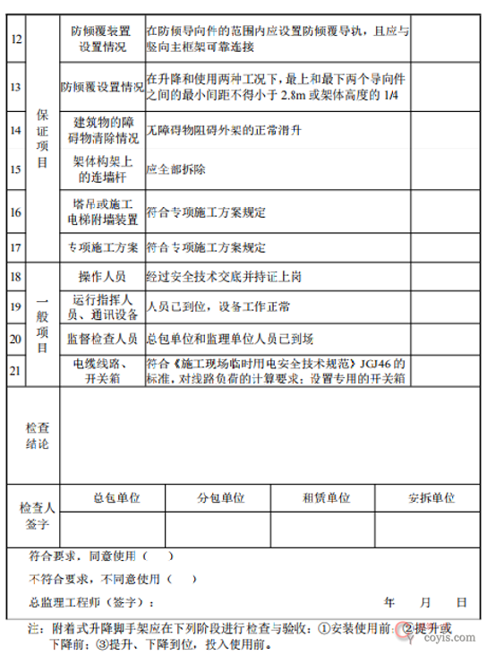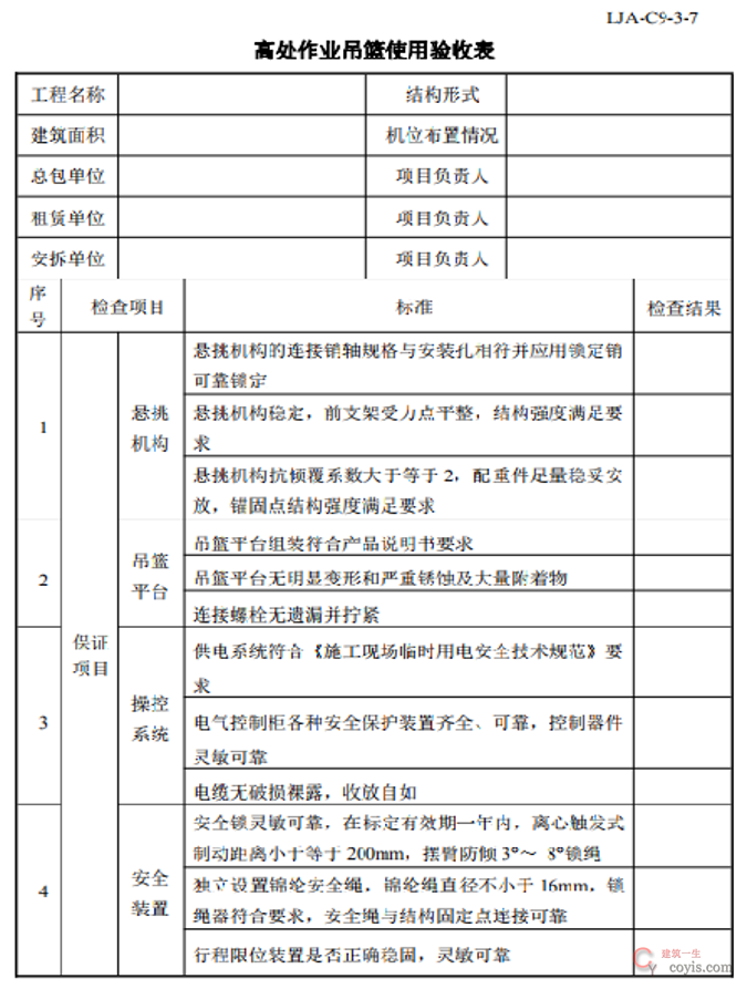 单位、安拆单位、监理单位按表LJA-C9-3-7进行共同验收,合格后方可使用。