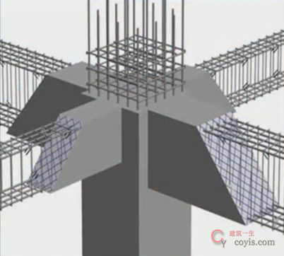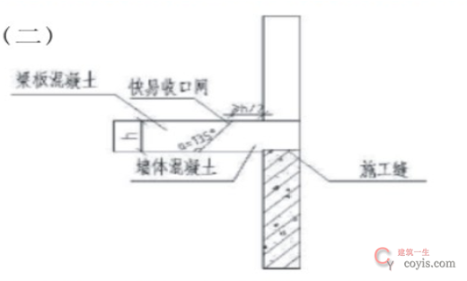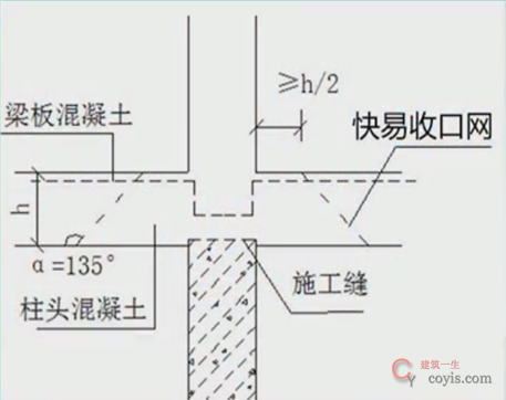 梁板与柱不同强度等级混凝土隔断做法示意图