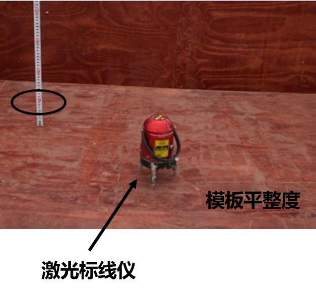 采用激光标线仪对模板平整度、砼平整度进行过程控制,全数复核,及时整改,并做好记录。
