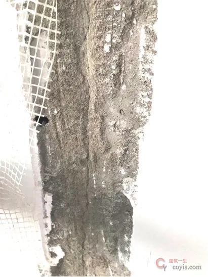 专用砂浆不合格或使用落地砂浆出现开裂,如下图: