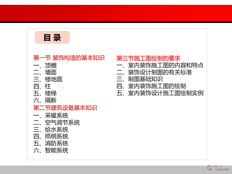 一、室内装饰施工图的内容和特点