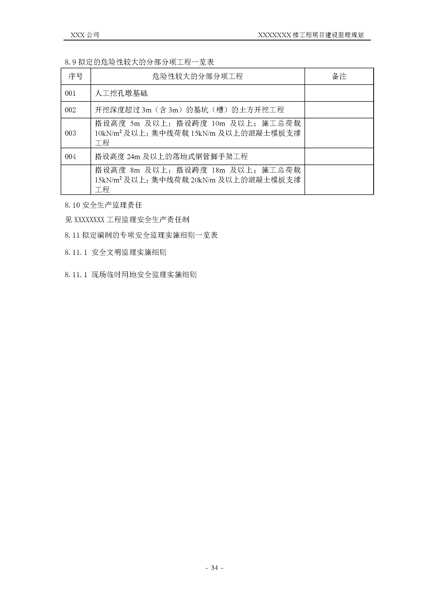 8.11拟定编制的专项安全监理实施细则一览表 34