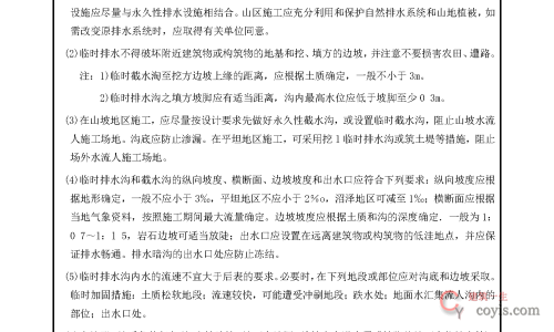 (2)临时排水不得破坏附近建筑物或构筑物的地基和挖、填方的边坡,并注意不要损害农田、遭路。